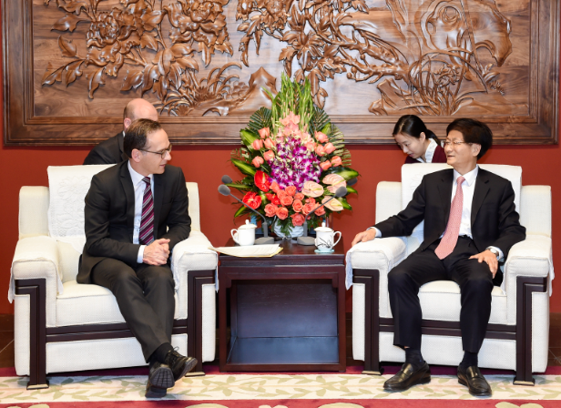 5月11日,中共中央政治局委员、中央政法委书记孟建柱在北京会见德国联邦司法和消费者保护部部长海科·马斯。