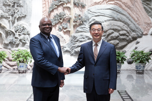 图为周强会见赞比亚国民议会议长马蒂比尼。 孙若丰 摄