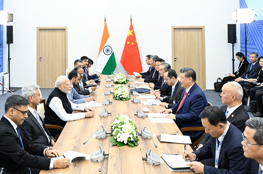 习近平指出,中国和印度同为文明古国、发展中大国、全球南方重要成员,都处在各自国家现代化建设的关键时期。中印正确把握历史潮流和两国关系发展方向,符合两国和两国人民根本利益。双方应该加强沟通合作,增进战略互信,相互成就彼此发展梦想。双方也要肩负起国际责任,为广大发展中国家联合自强作出表率,为推动世界多极化、国际关系民主化作出贡献。