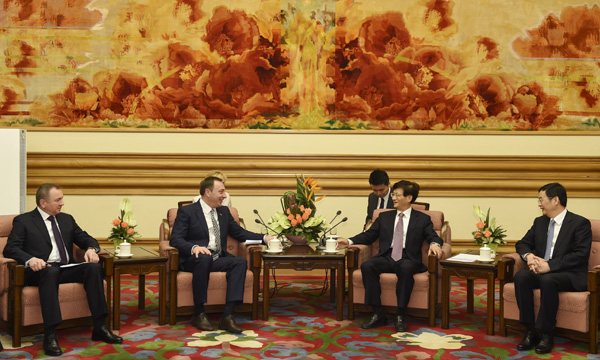 5月13日,中共中央政治局委员、中央政法委书记、中白政府间合作委员会中方主席孟建柱在中南海会见白俄罗斯总统办公厅副主任、中白政府间合作委员会白方主席斯诺普科夫。郝帆 摄