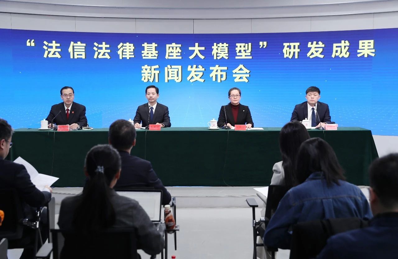 2024年11月15日,最高人民法院举行新闻发布会,发布“法信法律基座大模型”研发成果,并回答记者提问。人民法院出版社总编辑余茂玉,人民法院出版社副总编辑、人民法院电子音像出版社社长林志农,人民法院出版社总编辑助理、人民法院电子音像出版社常务副总编辑张承兵出席发布会。发布会由最高人民法院新闻局副局长姬忠彪主持。