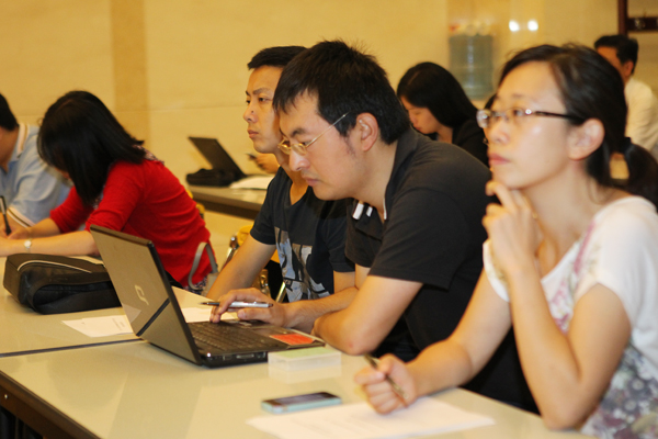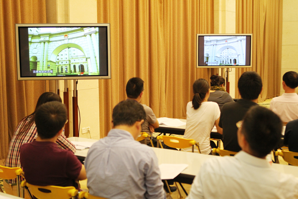 记者们认真观看江苏省无锡市中级人民法院刑事被害人司法救助工作经验介绍视频片