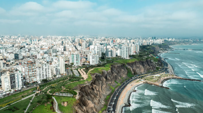 这是2024年10月9日拍摄的秘鲁首都利马新城米拉弗洛雷斯区(无人机照片)。新华社记者 李木子 摄
