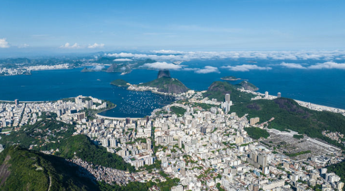 这是2023年3月1日拍摄的巴西里约热内卢市区和瓜纳巴拉湾(无人机照片)。新华社记者 王天聪 摄