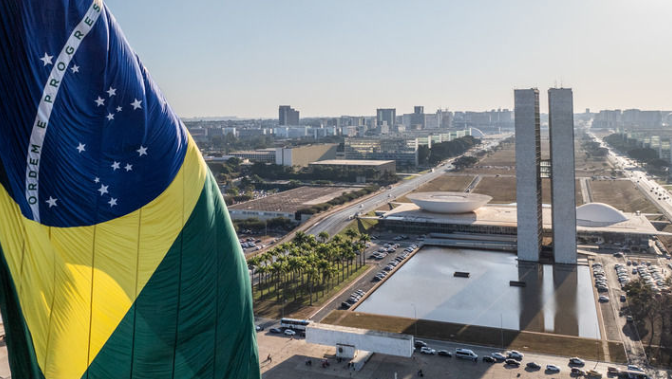 这是2024年7月16日在巴西首都巴西利亚拍摄的国会大厦(无人机照片)。新华社记者 王天聪 摄