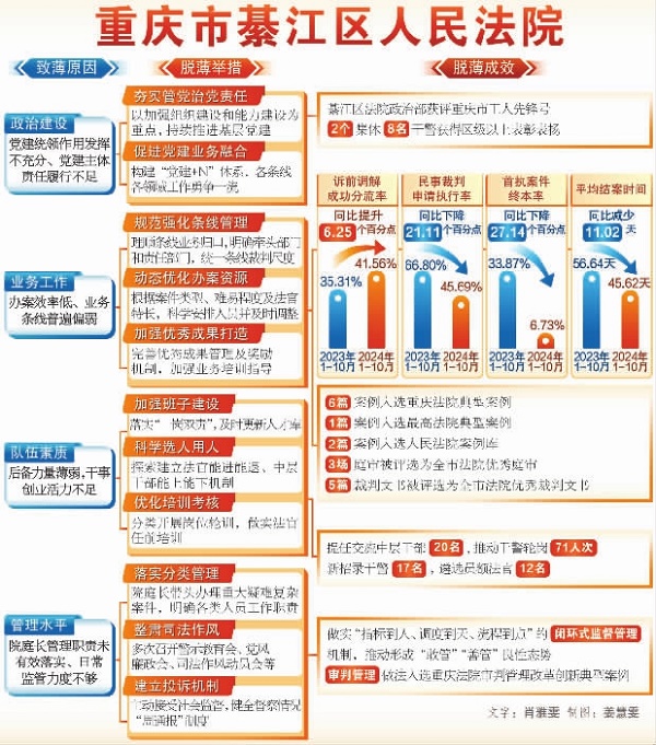 面对质效低下的困境,綦江区法院探索了一条以“点”带“面”补短板强弱项固根基的脱薄路径。
