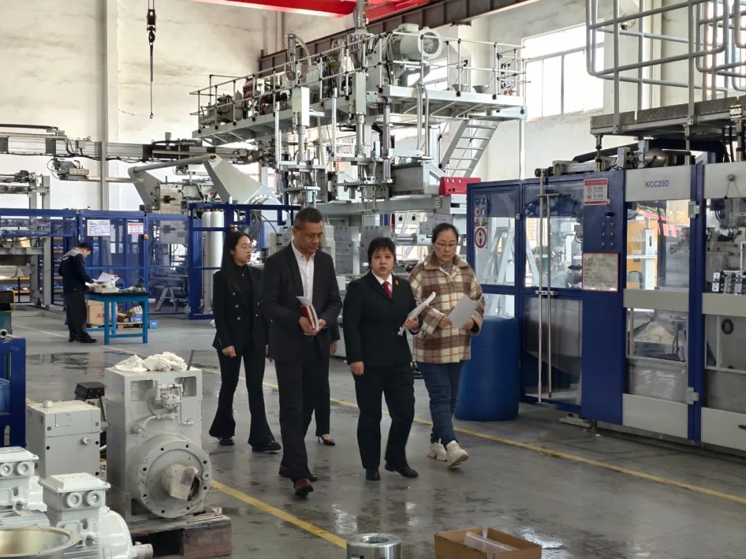图为法官回访克虏伯机械(广东)有限公司,主动问需于企、送法上门。罗俊杰 摄