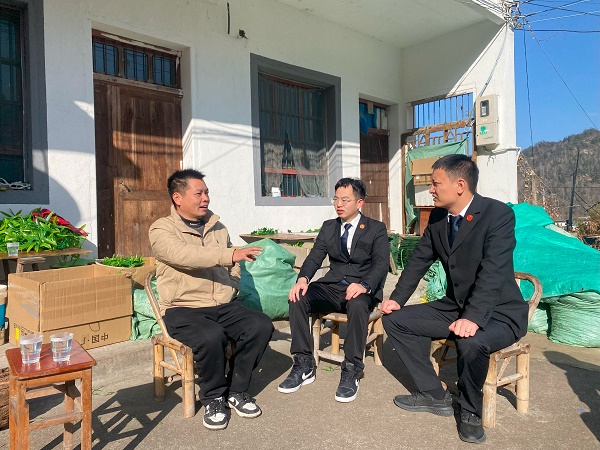 在平桥镇八角亭村,天台法院平街人民法庭的陈达楚也和同事们在走访一名当事人。老张年前有个借贷案子起诉到法庭,借款的是同村人老李,而且以前双方关系也不错。陈达楚在节后上班第一天就来到村里,看看能否调解成功。