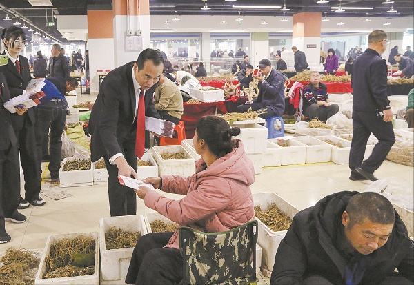顾传羽和同事们一边发放普法宣传册,一边对记者说:“这里是东北最大的野山参交易市场,因为人参价格公道,品质又好,在行业内认可度很高,年销售额高达35亿元。”