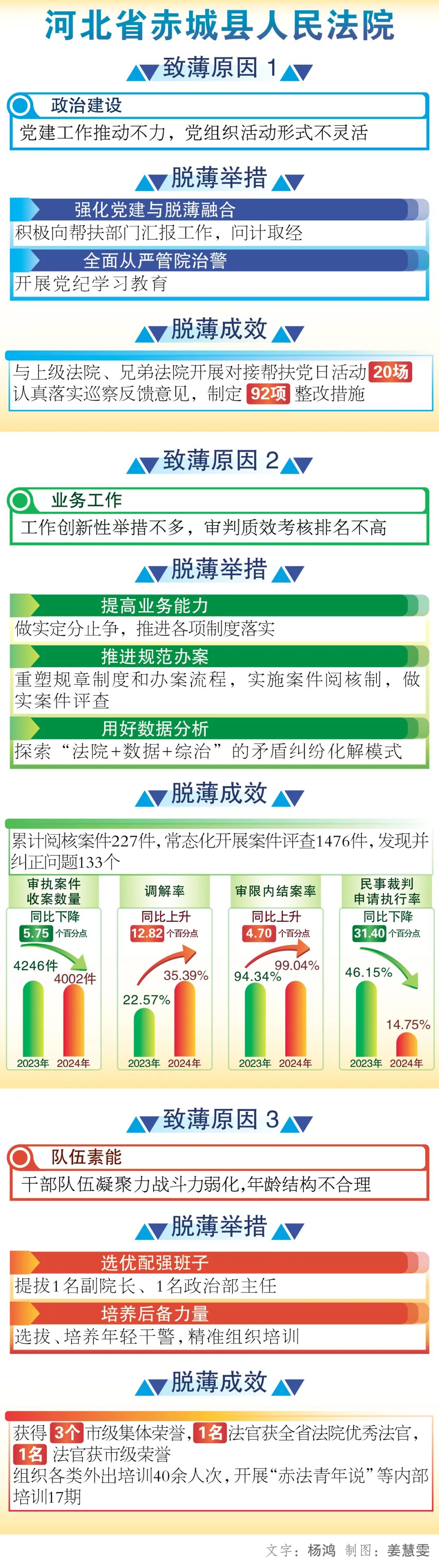 赵治海表示,脱薄工作开展以来,最高人民法院、河北省高级人民法院、张家口市中级人民法院高度重视,相继到赤城法院调研指导,倾力帮扶。赤城法院坚持问题导向,聚焦薄弱环节,逐项补短板强弱项,以强烈的责任担当推动各项工作落地见效。