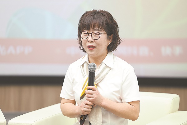 图为全国人大代表施文美在直播时探讨未成年人司法保护问题。王俏 摄