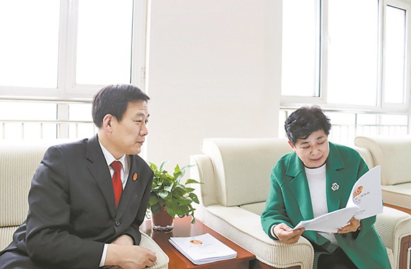 图为全国人大代表张淑芬(右)在易县法院调研。陈薇 摄