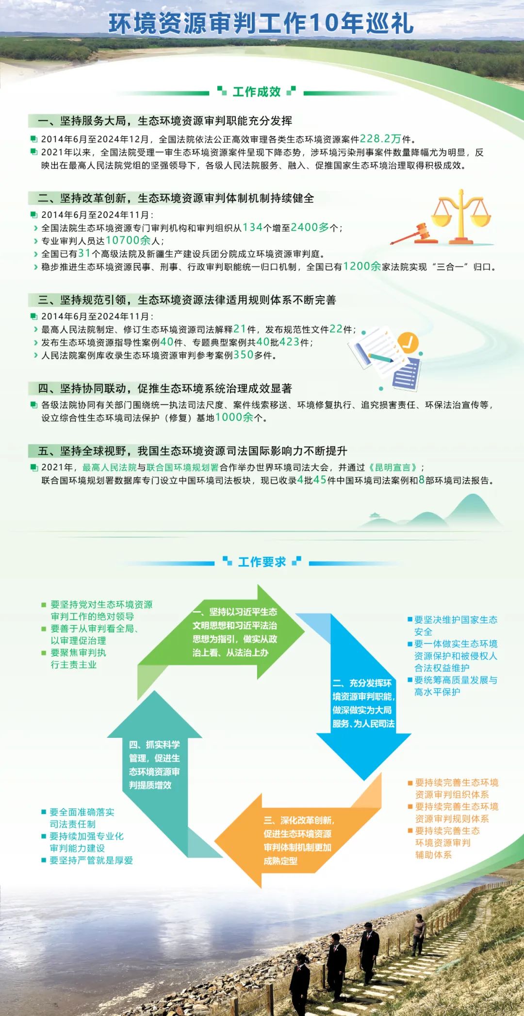 2014年6月,最高人民法院环境资源审判庭正式设立。时间的齿轮不停转动,环境资源审判在专业化路子上已经开创性地走过了十年漫漫征程,脚印下的绿色画卷正在徐徐展开。
