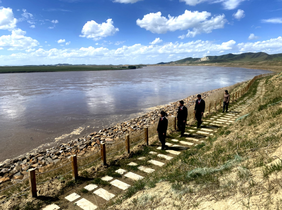 2024年6月5日,四川省若尔盖县人民法院干警在黄河边巡河。 吴世仪 摄