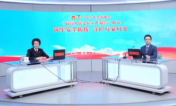 3月9日下午,最高人民法院举办2025年全国两会《最高人民法院工作报告》解读系列全媒体直播访谈第二场活动。最高人民法院审判委员会委员、刑一庭庭长何莉围绕刑事审判防风险、保安全、护稳定在线解读《最高人民法院工作报告》。中央广播电视总台主持人张仲鲁主持活动。40余家媒体及网络平台参与直播访谈。