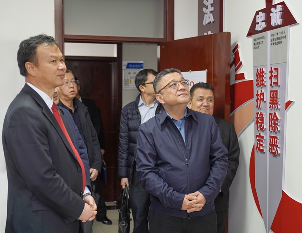 图为2024年11月21日,新疆维吾尔自治区高级人民法院院长迪里夏提·沙依木(右二)在哈密市伊州区人民法院走访调研。李海亮 摄