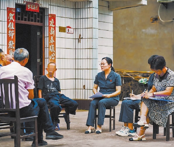 图为二〇二四年七月,重庆市璧山区人民法院璧北人民法庭庭长莫婷婷在八塘镇石庙村组织当事人『面对面』调解。刘茂涵 摄
