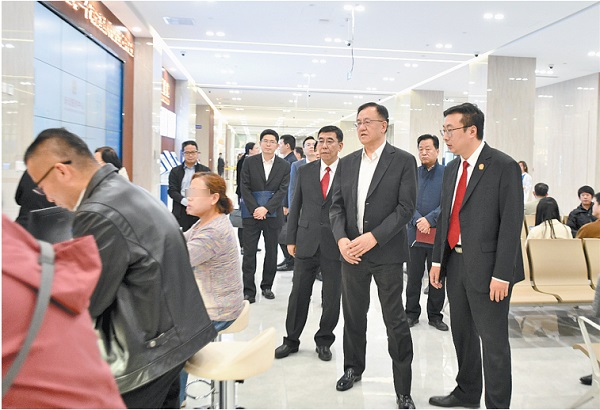 图为北京市高级人民法院党组书记、院长寇昉(右二)在朝阳区人民法院调研执行等工作。曹璐摄