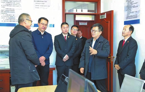 图为宁夏高院党组书记、院长安长海(右二)在泾源县人民法院调研。贾军摄