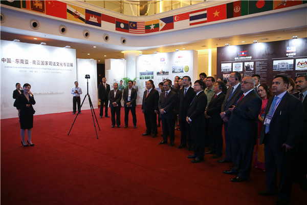 周强和外国嘉宾参观中国-东盟-南亚国家司法文化展