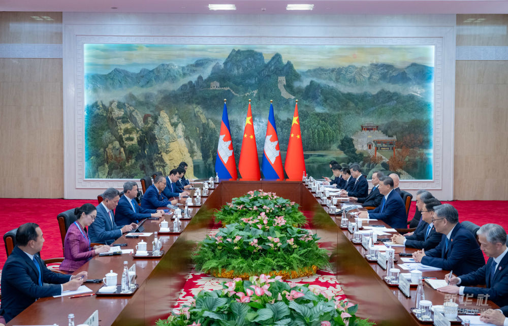 8月30日下午,国家主席习近平在天津迎宾馆会见来华出席2025年上海合作组织峰会的柬埔寨首相洪玛奈。