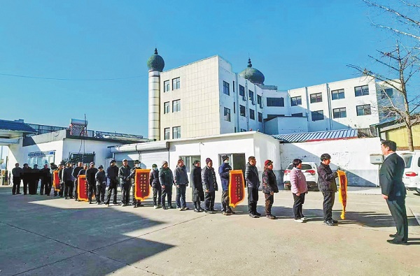 图为本案村民代表到山东省沂源县人民法院东里人民法庭向法官齐元林(右一)赠送锦旗。张儒佳 摄