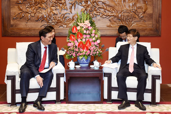 6月15日,中共中央政治局委员、中央政法委书记孟建柱在北京会见印尼总统特使、海洋统筹部长卢胡特