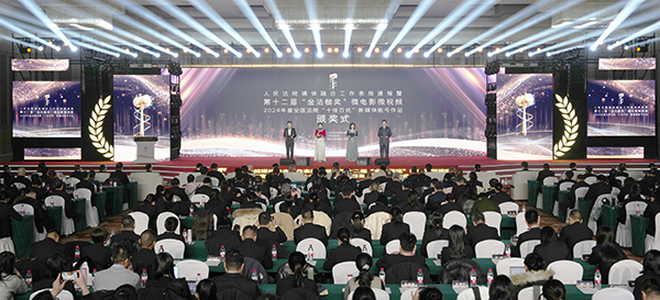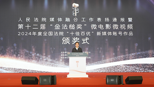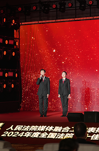 图⑫:人民法院媒体融合工作表扬通报暨第十二届“金法槌奖”微电影微视频、2024年度全国法院“十佳百优”新媒体账号作品颁奖式现场。