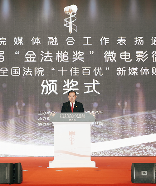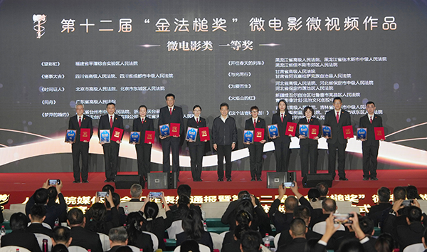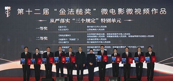 图②:最高人民法院党组副书记、分管日常工作的副院长邓修明颁发“微电影类一等奖”。