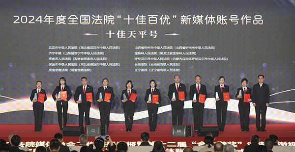 全国法院“十佳百优”新媒体账号作品推选活动已开展七年,颁奖式现场,当2024年度全国法院“十佳新媒体作品”“十佳客户端账号”“十佳微博账号”“十佳微信账号”“十佳天平号(个人)”“十佳天平号”获奖名单陆续在大屏幕滚动出现时,现场频频亮起闪光灯。