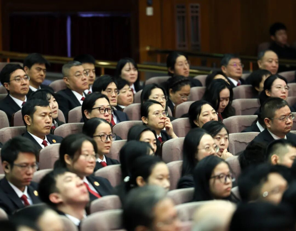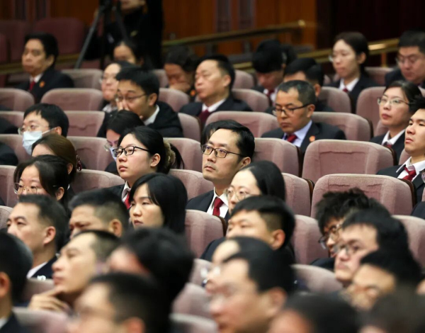 报告会以四级法院同步视频会议形式召开。最高法党组成员、政治部主任孙镇平主持会议。最高法在京院领导,北京市委常委、政法委书记谈绪祥,北京高院党组书记、院长寇昉,全国人大代表吴华侠、全国政协委员马静,中央宣传部、中央政法委、人力资源社会保障部、全国总工会、最高检、公安部、国家安全部、司法部有关部门负责同志,北京市委政法委、北京法院有关负责同志出席会议。最高法各部门干警在主会场参会,地方各级法院干警在分会场参会。(记者:白龙飞 | 摄影:孙若丰)