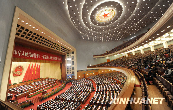 3月11日,十一届全国人大三次会议在北京人民大会堂举行第四次全体会议。新华社记者 杨宗友 摄