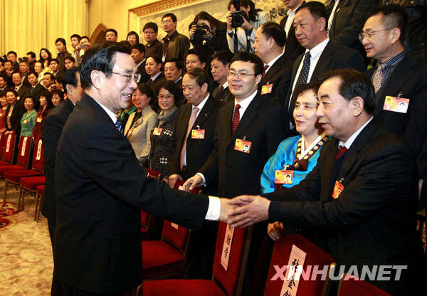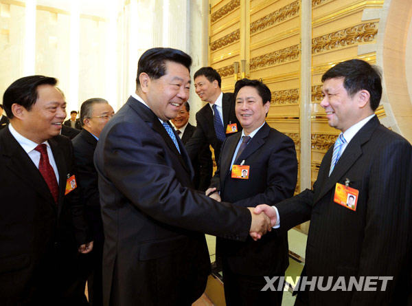 3月11日,中共中央政治局常委李长春参加十一届全国人大三次会议青海代表团的审议。新华社记者 丁林 摄