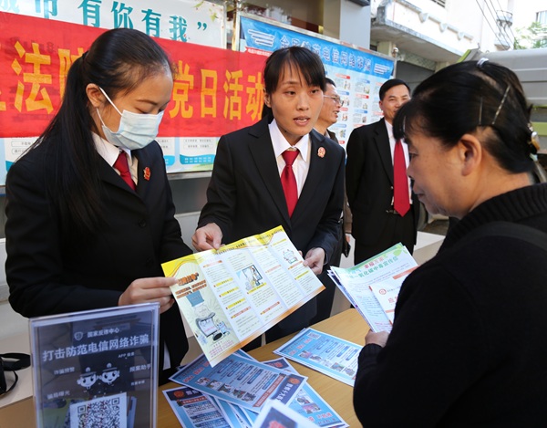 图②:盘桂淑(左二)在开展普法活动。