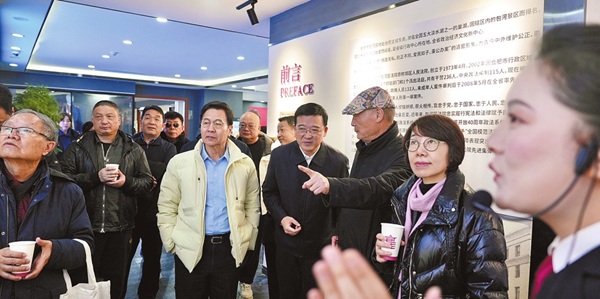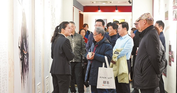 图为采风作家们在包河区人民法院文化活动中心观看展览。见习记者 毛熙之 摄