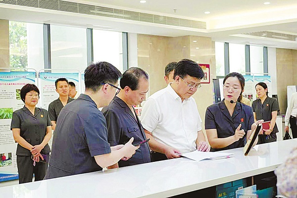 2025年5月15日,湖南高院党组书记、院长朱玉在湘潭中院、雨湖区法院及鹤岭法庭调研,深入了解工作情况,广泛征求意见建议。李灿 摄
