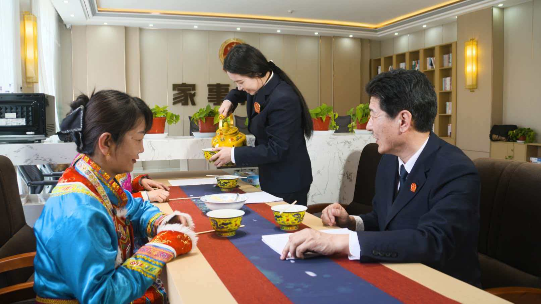 在甘肃省肃南县人民法院家事法庭,法官用“一碗奶茶”调解法“消融”婚姻家庭矛盾纠纷。
