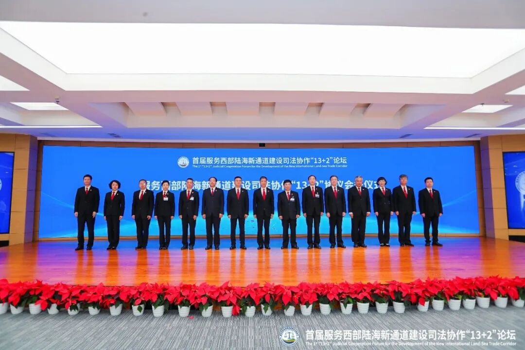 2024年5月,经最高人民法院批复同意,重庆市高级人民法院牵头建立服务西部陆海新通道建设司法协作“13+2”机制,由广西、云南、海南、新疆等13个省、自治区、直辖市高院和2个中院参与共建。图为首届服务西部陆海新通道建设司法协作“13+2”论坛在重庆举行。