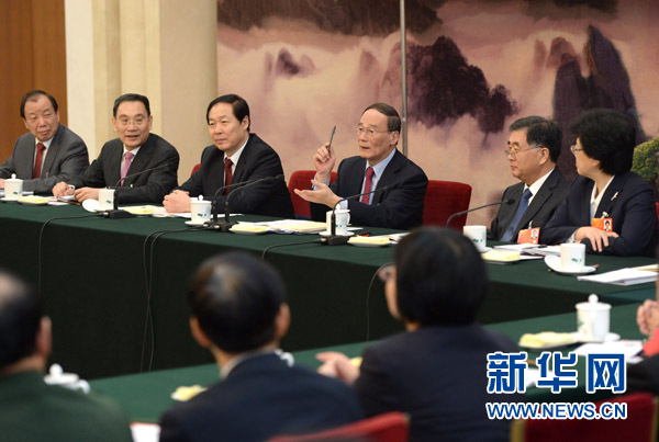 3月8日,中共中央政治局常委王岐山参加十二届全国人大一次会议安徽代表团的审议。 新华社记者 马占成 摄