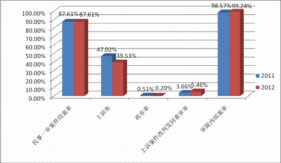 图表一:地方各级法院2012年知识产权民事一审案件相关数据