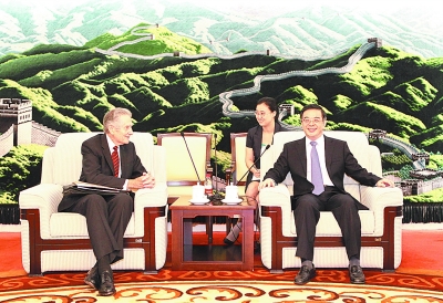 图为最高人民法院院长周强会见美国资深法官、第九巡回上诉法院原首席法官J•克利福德•华莱士。记者 罗霄 摄