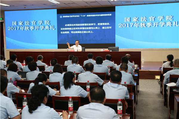 图为 周强在国家法官学院2017年秋季开学典礼上开讲第一课。孙若丰 摄