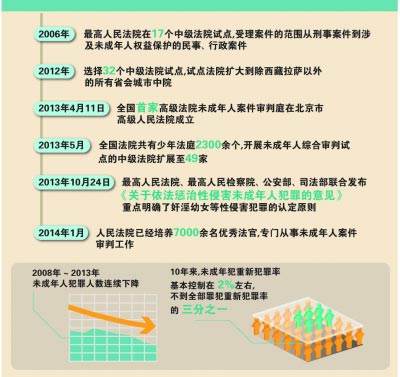 截至今年1月,人民法院已经培养了以尚秀云、詹红荔、李其红为代表的7000余名优秀法官,专门从事未成年人案件审判工作。