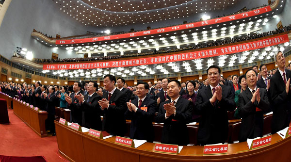 10月18日,中国共产党第十九次全国代表大会在北京人民大会堂开幕。新华社记者 饶爱民 摄