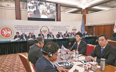 6月19日至20日,孟建柱在俄罗斯喀山出席第五届安全事务高级代表国际会议,并就加强反恐国际合作、严厉打击恐怖主义作主旨发言。郝 帆 摄
