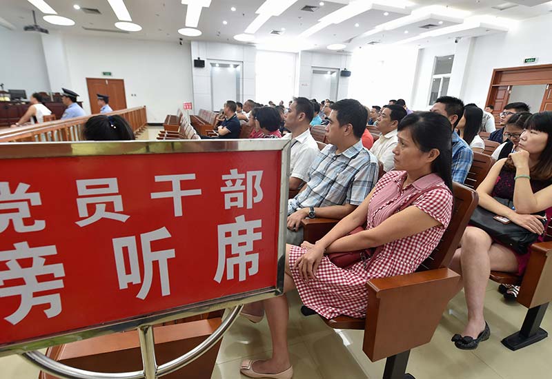 福州长乐的国土系统党员干部在市法院旁听某乡镇土地村建分管领导涉嫌职务犯罪案件的庭审(2016年9月27日摄)。新华社记者宋为伟摄