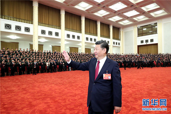 中共中央总书记、国家主席、中央军委主席习近平25日下午在人民大会堂亲切会见了出席党的十九大代表、特邀代表和列席人员,并同大家合影留念。