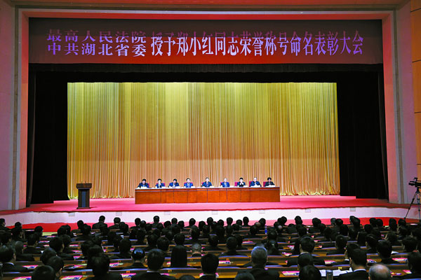 11月5日上午,最高人民法院、中共湖北省委联合召开命名表彰大会,授予湖北省武汉市江汉区人民法院民事审判第一庭庭长郑小红同志“全国优秀法官”、湖北省“优秀共产党员”荣誉称号。最高人民法院党组书记、院长周强,中共湖北省委书记、省人大常委会主任李鸿忠出席会议并讲话。会议强调,要认真学习贯彻党的十八届四中全会精神,深入学习郑小红同志先进事迹,增强党性、严守纪律、清正廉洁、忠诚使命,始终坚持司法为民、公正司法,更好地肩负起维护社会大局稳定、促进社会公平正义、保障人民安居乐业的职责使命。
