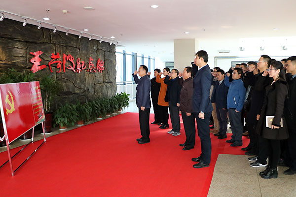 参观完毕后,江必新带领全庭党员在王荷波雕像前,庄严举起右拳,重温入党誓词。在铿锵有力的“我志愿加入中国共产党……”誓词中,同志们领悟到了早期共产党人的首创精神、奋斗精神和奉献精神,进一步坚定了共产党人的初心和使命。