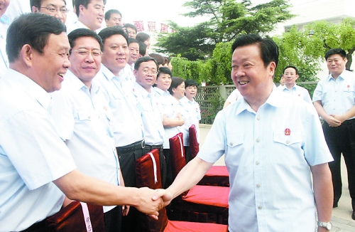 图为王胜俊与参加河北省中级法院院长座谈会的代表亲切握手。人民法院报记者 丁力辛 摄